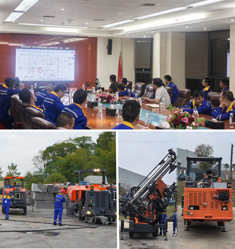 培訓(xùn)以“理論結(jié)合實(shí)踐”的模式開展,針對(duì)江西鑫通礦用掘進(jìn)鉆車和礦用錨桿鉆車展開教學(xué),理論課程涵蓋臺(tái)車的運(yùn)行原理、保養(yǎng)和維修知識(shí);設(shè)備實(shí)操通過結(jié)合模擬掌子面對(duì)眼、在巖石上進(jìn)行鉆孔等課程,為學(xué)員提升操作技能打下了堅(jiān)實(shí)的基礎(chǔ)。