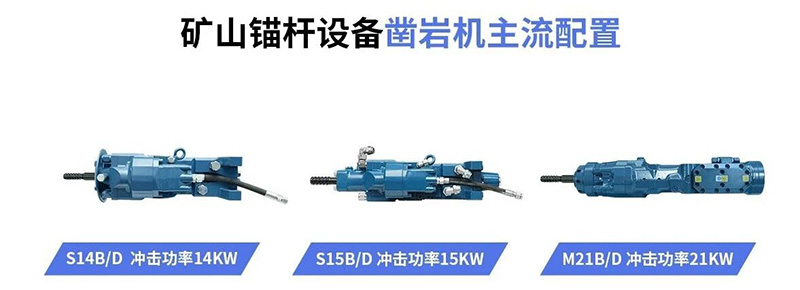 本系列礦山錨桿鑿巖臺(tái)車標(biāo)配沃思德S14B/D鑿巖機(jī),可根據(jù)巖層條件及客戶需求升級(jí)至高功率S15B/D、M21B/D型號(hào),鑿巖速度達(dá)0.8-2.5m/分鐘。S14B/D鑿巖機(jī)機(jī)身僅長(zhǎng)574mm,可為推進(jìn)補(bǔ)償節(jié)省出近200mm的空間,使大臂旋轉(zhuǎn)可在更小空間內(nèi)完成,高效率完成大小巷道的錨桿支護(hù)作業(yè)。