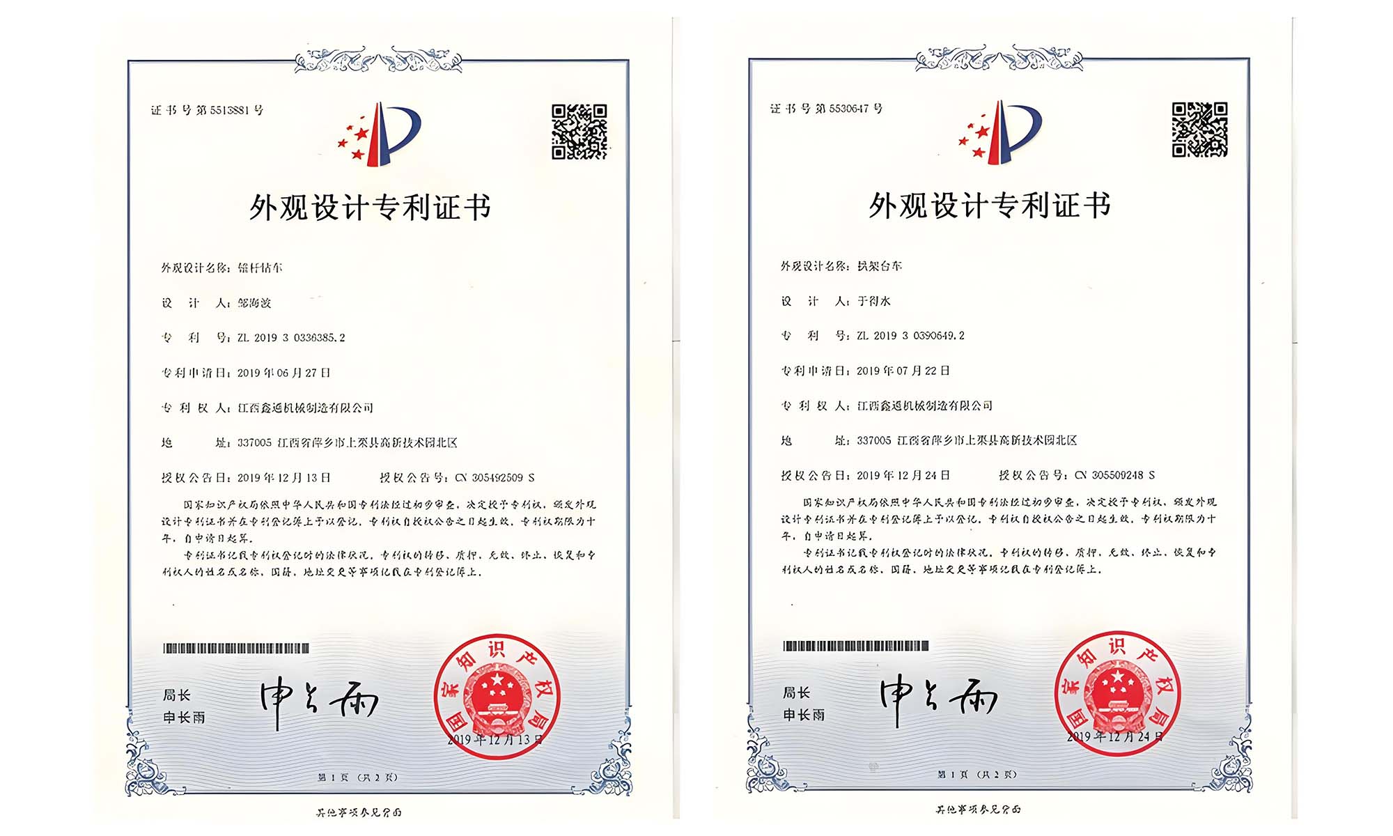 外觀設(shè)計(jì)專利證書(shū)