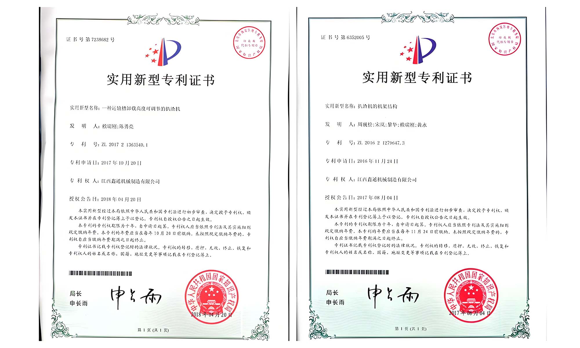 實(shí)用新型專利證書(shū)